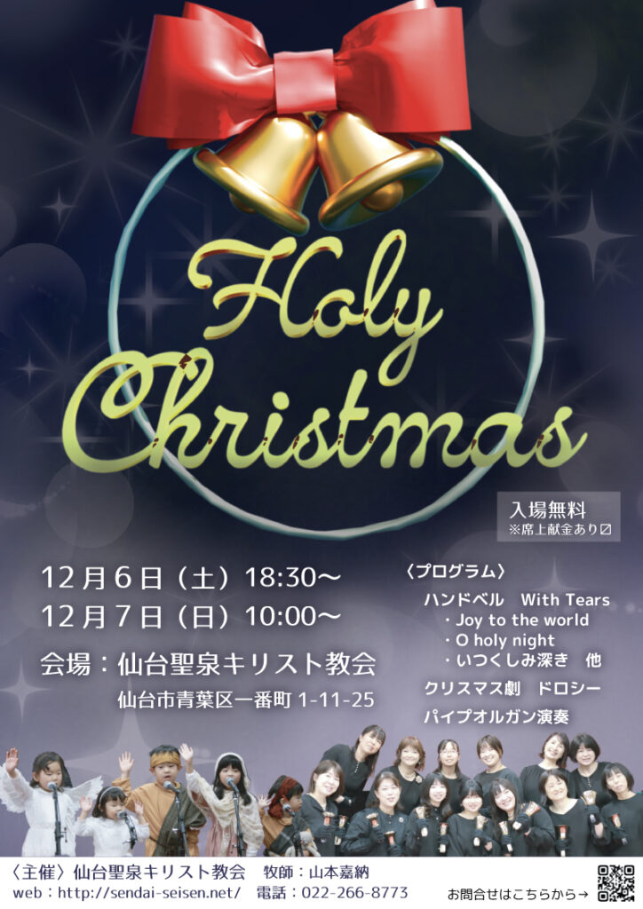 12/6(土)、12/7(日)の両日、ハンドベルを中心に音楽でクリスマスをお祝いします。